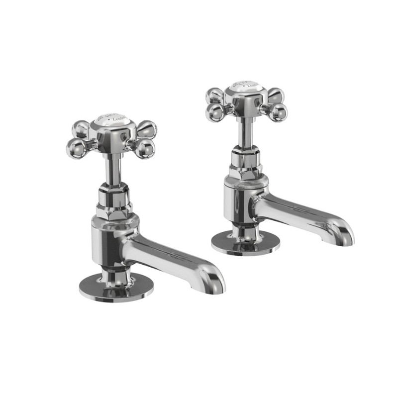 Burlington Stafford Bateria umywalkowa 2-otworowa z długą wylewką z pokrętłami Chrom STA12_QT