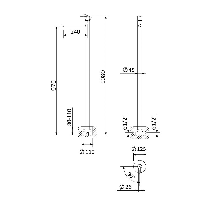 Bruma Leaf Bateria umywalkowa wolnostojąca Sunset 1679401SS