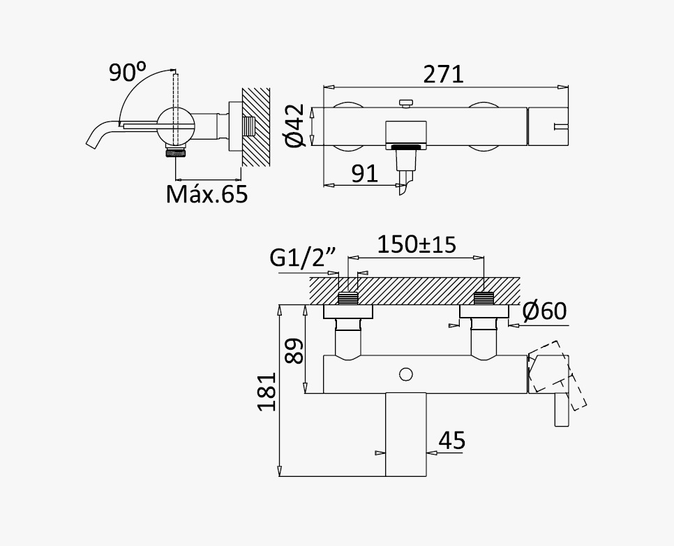 Bruma Breeze Bateria wannowo-natryskowa ścienna Pure White 1680301PW