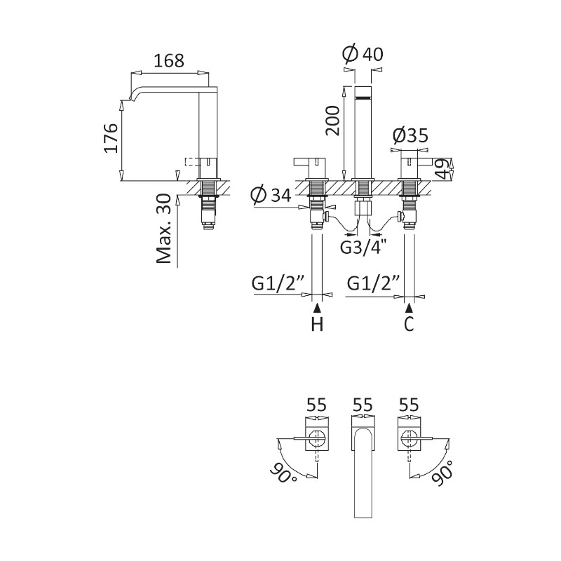 Bruma Breeze Bateria umywalkowa 3-otworowa bez korka Sunset 1682501SS