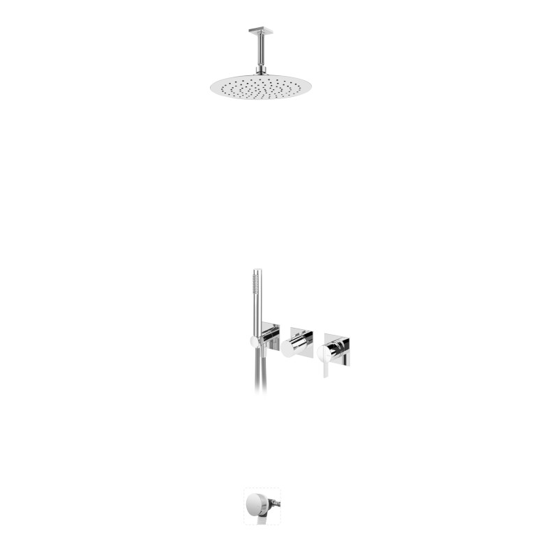 Zestaw natryskowy z deszczownicą, ramieniem sufitowym, baterią podtynkową i słuchawką