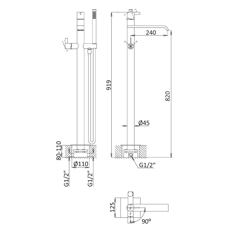 Głębokość montażu: 80 - 110 mm