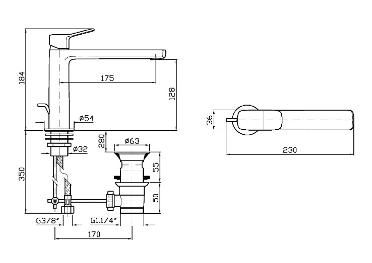 Zucchetti Brim Bateria umywalkowa jednouchwytowa z wydłużoną wylewką z korkiem 1¼” chrom ZBR380