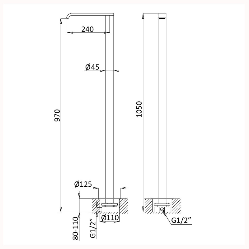 Średnica rozety podłogowej: 125  mm