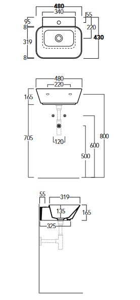 Simas Wave Umywalka stawiana na blat/wisząca z otworem na baterię 48x43x16,5 cm biały WA08