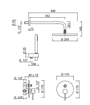 Simas Tokyo Zestaw prysznicowy podtynkowy z przełącznikiem, ramieniem, deszczownicą i słuchawką z uchwytem chrom TOSDID.CC