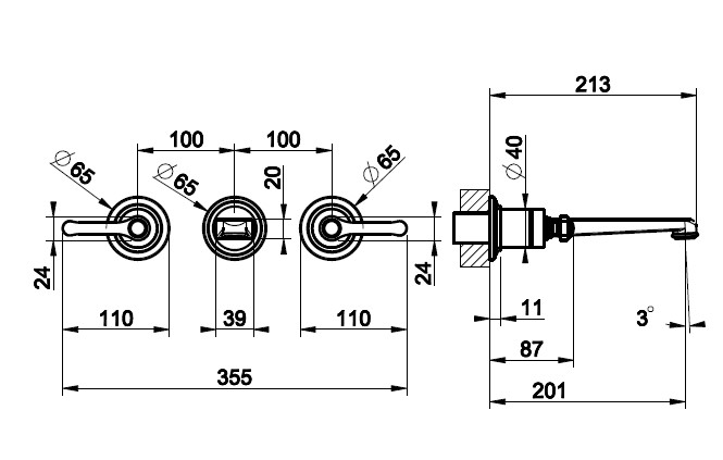 Gessi Venti20 Bateria umywalkowa 3-otworowa z średnią wylewką element zewnętrzny chrom 65091.031