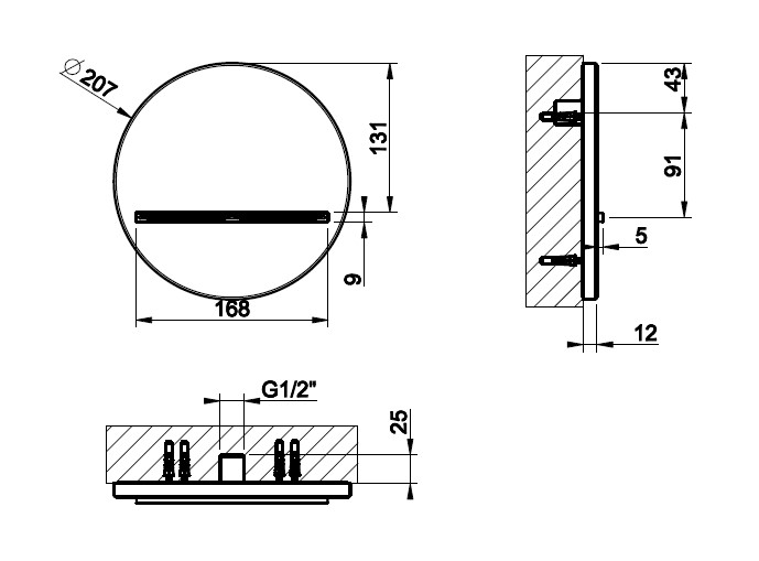Gessi Venti20 Deszczownica Ø 32,8 z ramieniem sufitowym na wymiar chrom 65155.031