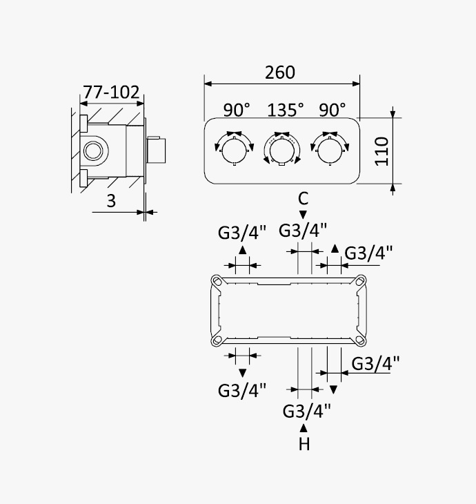 Głębokość montażu: 77 - 102 mm