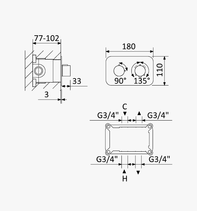 Głębokość montażu: 77 - 102 mm
