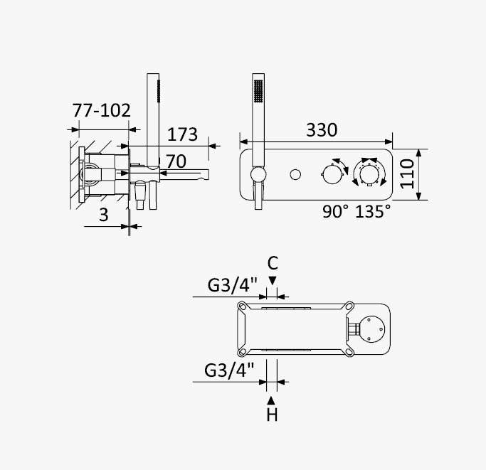 Głębokość montażu: 77 - 102 mm
