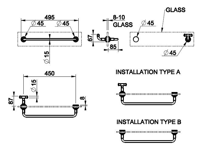 Gessi Venti20 Wieszak ścienny na ręcznik 45 cm mocowanie ze szkła chrom 65513.031