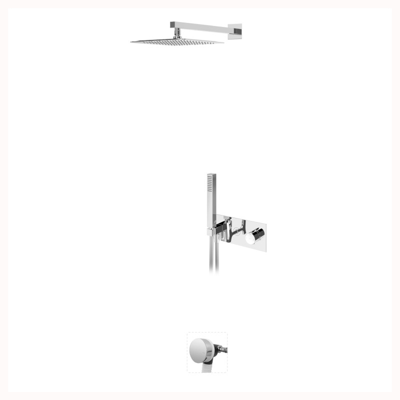 Bateria termostatyczna wannowo-natryskowa podtynkowa z deszczownicą ścienną oraz zestawem: słuchawka prysznicowa, wąż, przyłącze z uchwytem na słuchawkę