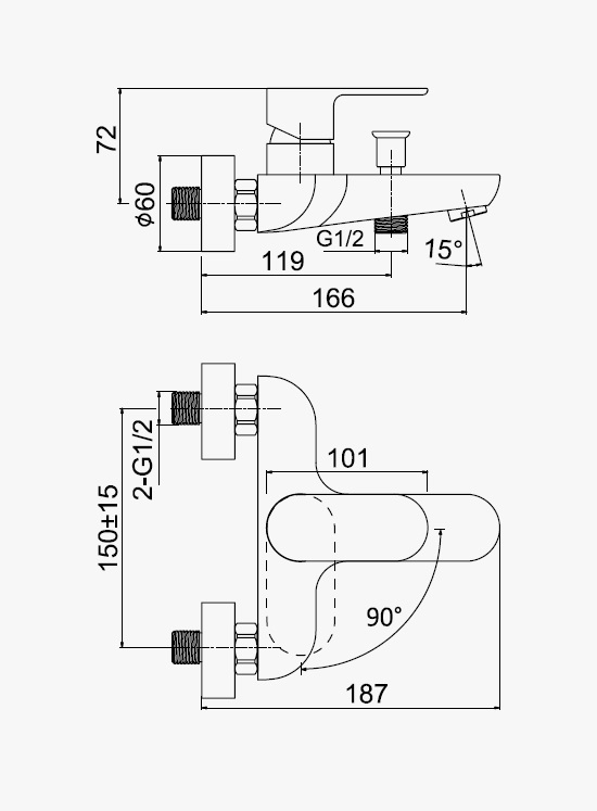 Bruma Coral Bateria wannowo-natryskowa ścienna Chrom 1940300CR