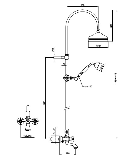 Webert Ottocento Zestaw wannowo-prysznicowy ścienny chrom OT721208.015