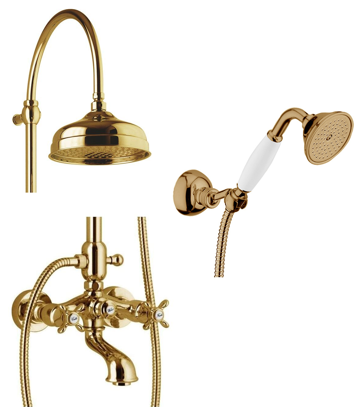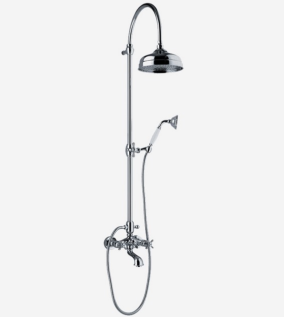 Bateria wannowa z kolumną prysznicową, deszczownicą z ramieniem, słuchawką, uchwytem, wężem