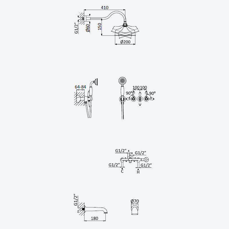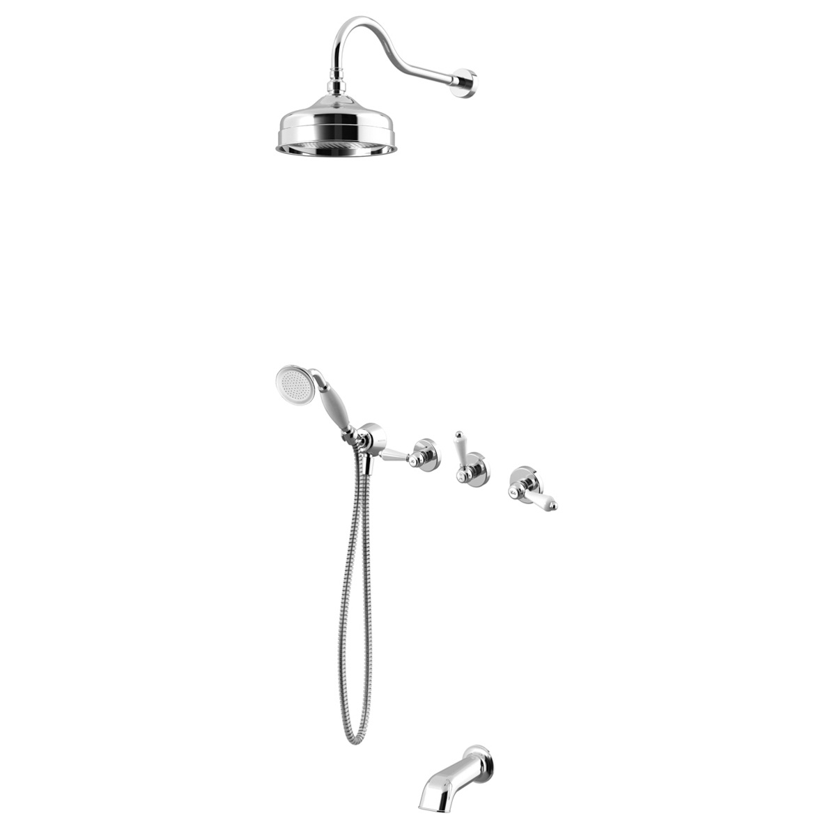 Bruma Classico Zestaw wannowo-natryskowy podtynkowy z deszczownicą Ø 200 mm ścienną, wylewką i słuchawką Chrom 1182401CR