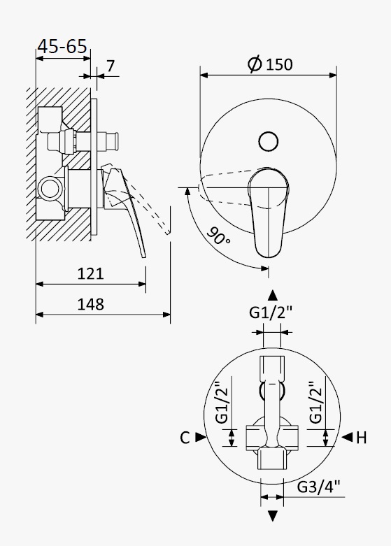 Głębokość montażu: 45 - 65 mm