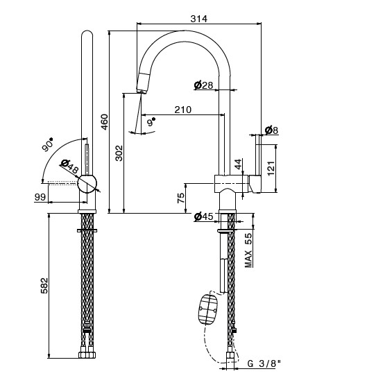 Newform Moony Bateria zlewozmywakowa jednouchwytowa z obrotową i wyciąganą wylewką chrom 3125.21.018
