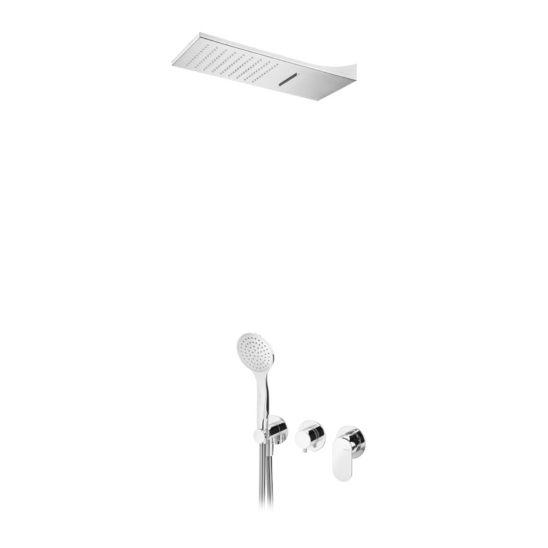 Bateria natryskowy podtynkowa z deszczownicą ścienną o strumieniu kaskadowym, słuchawką prysznicową oraz przyłączem z uchwytem na słuchawkę