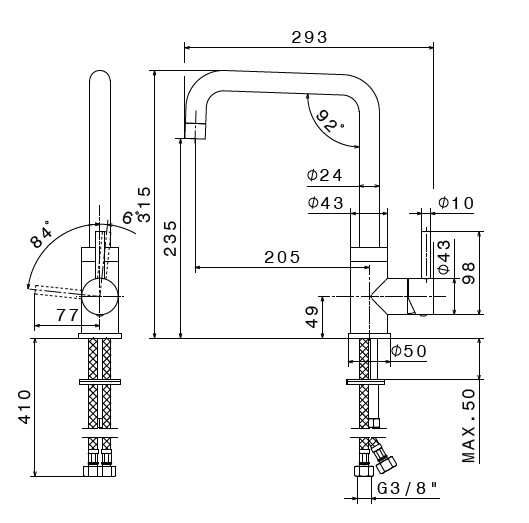 Newform Real Bateria zlewozmywakowa jednouchwytowa z obrotową wylewką chrom 63420.21.018