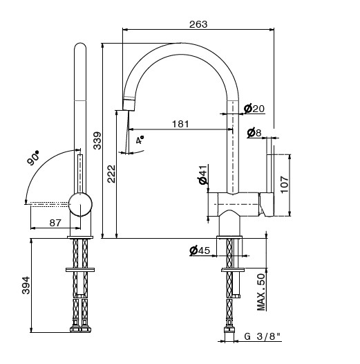 Newform XT Bateria zlewozmywakowa jednouchwytowa z obrotową wylewką chrom 4325.21.018