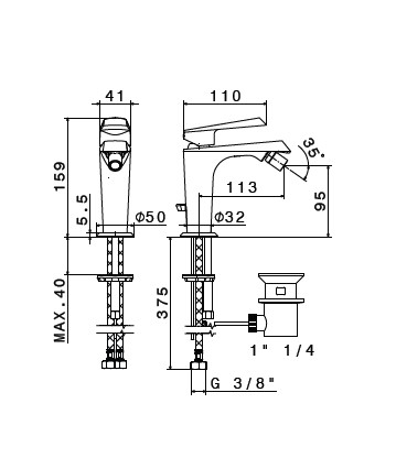 Newform Nio Bateria bidetowa jednouchwytowa z korkiem chrom 68925.21.018