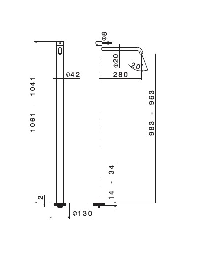 Newform X-Steel 316 Bateria umywalkowa z kolumną podłogowa część zewnętrzna stal nierdzewna 69618EX.50.050