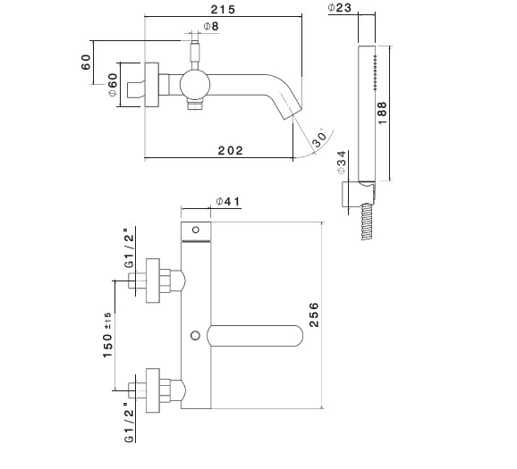Newform X-Steel 316 Bateria wannowa ścienna z zestawem prysznicowym PVC stal nierdzewna 69640CX.50.050