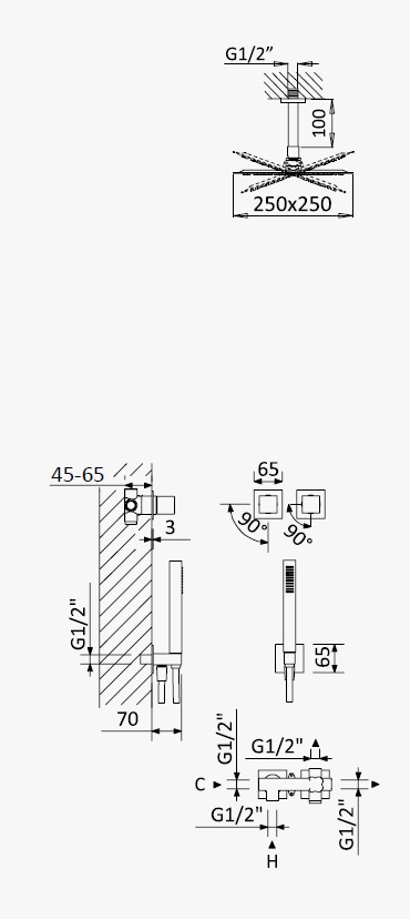 Bruma Escudo 2 Zestaw natryskowy podtynkowy z deszczownicą 250x250 mm sufitową Chrom 1026531CR