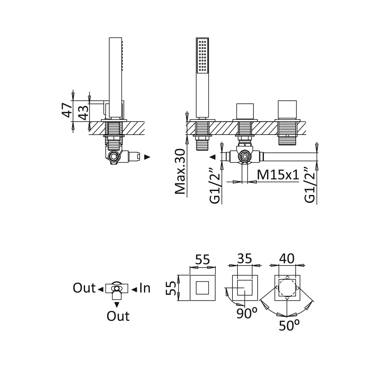 Bruma Escudo 2 Zestaw natryskowy 2-drożna na brzeg wanny Chrom 1025011CR
