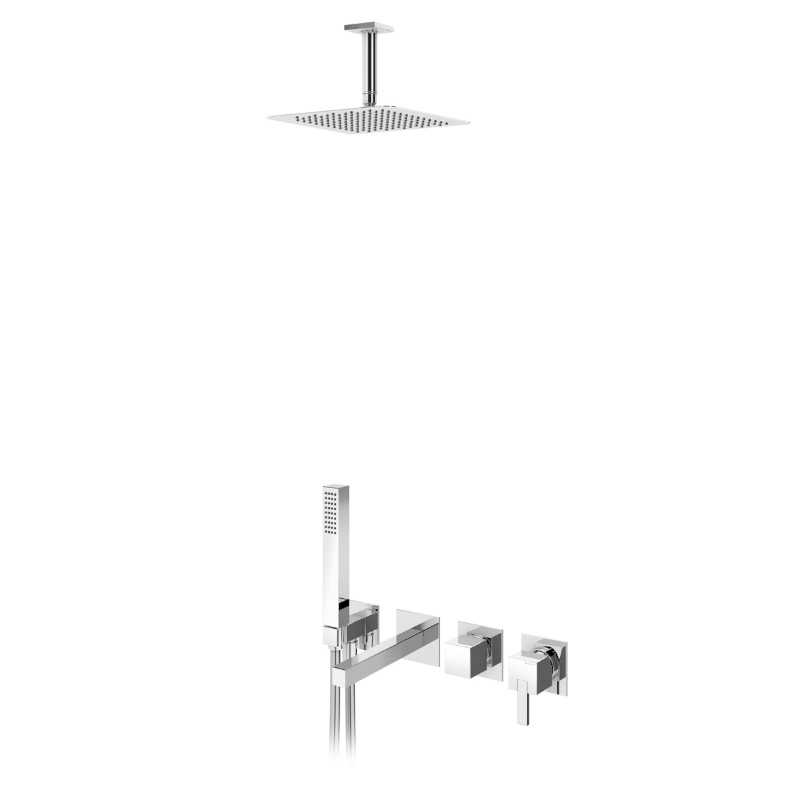 Bruma Escudo 2 Zestaw wannowo-natryskowy podtynkowy z deszczownicą 250x250 mm sufitową ze słuchawką prysznicową i wylewką Chrom 1023411CR