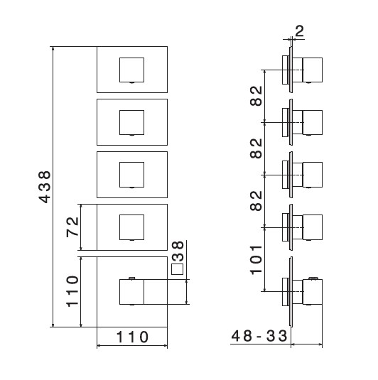 Newform Multiutenza Bateria prysznicowa termostatyczna podtynkowa z czterema wyjściami część zewnętrzna chrom 67641E.21.018