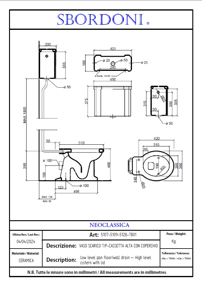 Sbordoni Romana Zbiornik do WC górnopłuk 45x20x37,5 cm biały 5128