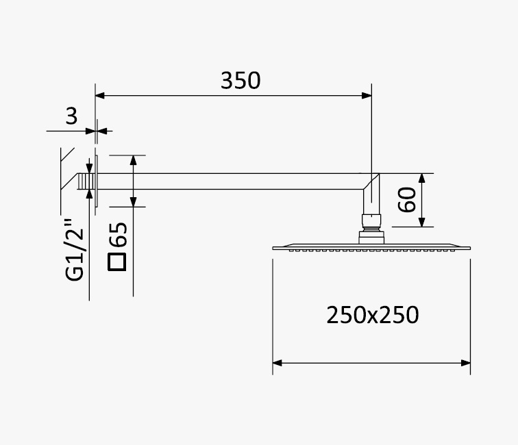 Bruma Quadra Blue Deszczownica ścienna 250x250 mm z ramieniem ściennym Chrom 1455261CR