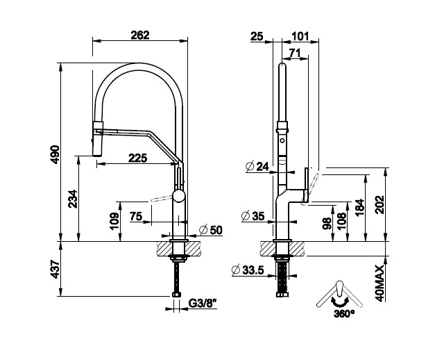 Gessi Stelo Bateria kuchenna z obrotową i wyciąganą wylewką Chrom 60315.031