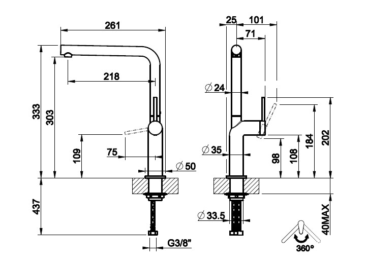 Wysokość wylewki: 30,3 cm