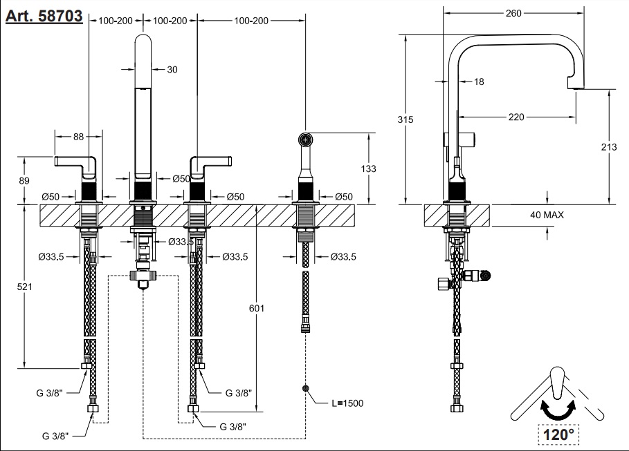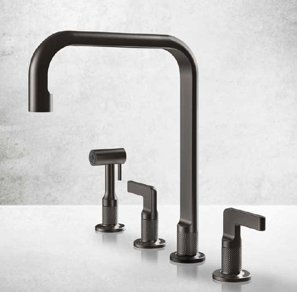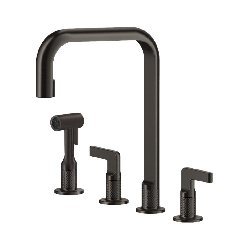 Gessi Inciso Bateria kuchenna 2-uchwytowa 4-otworowa Black Metal Brushed PVD 58703.707