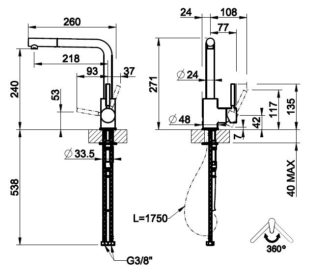 Wysokość wylewki: 240 mm