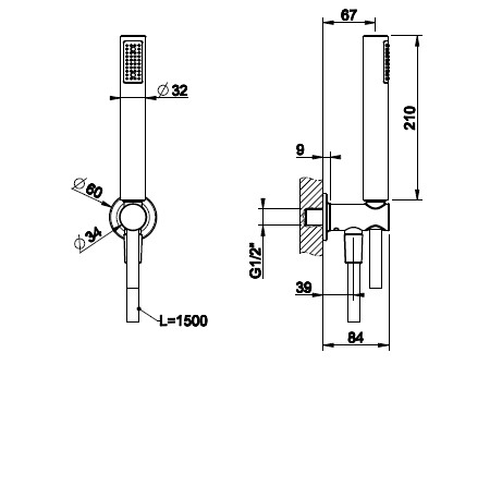 Gessi Zestaw prysznicowy ścienny z przyłączem wody, słuchawką i wężem 150 cm Black Metal PVD 63329.706