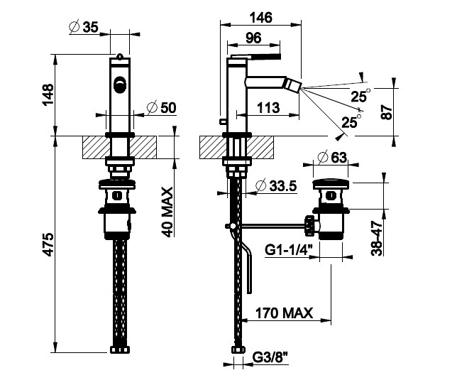 Gessi Ingranaggio Bateria bidetowa jednootworowa z korkiem chrom 63507.031