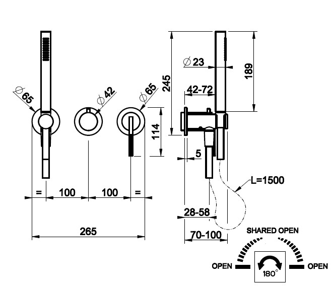 Gessi Ingranaggio Bateria prysznicowa ścienna z przełącznikiem 2-drożnym ze słuchawką i wężem część zewnętrzna chrom 63545.031