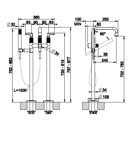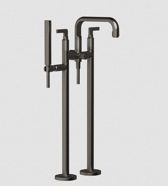 Gessi Inciso Bateria wannowa wolnostojąca część zewnętrzna Black Metal Brushed PVD 58029.707