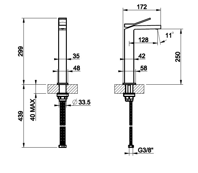 Gessi Rettangolo K Bateria umywalkowa jednootworowa wysoka bez korka chrom 53006.031