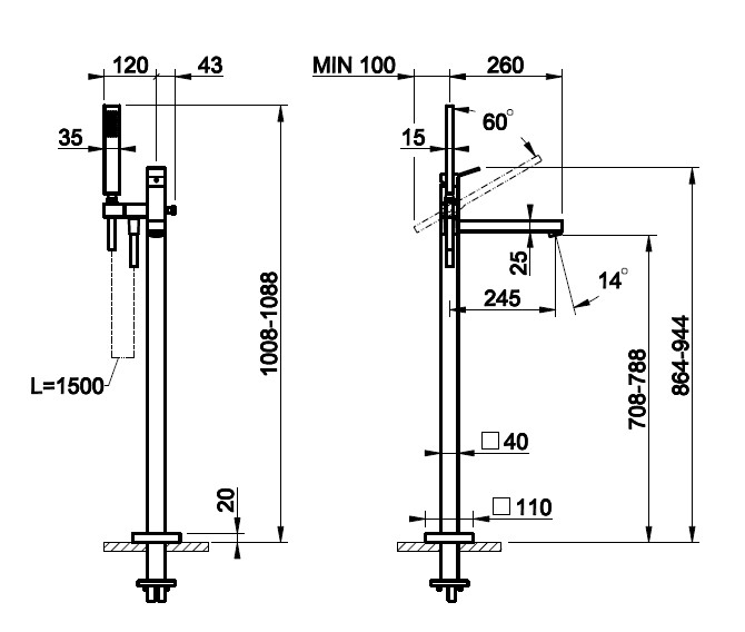 Gessi Rettangolo K Bateria wannowa wolnostojąca część zewnętrzna chrom 53129.031