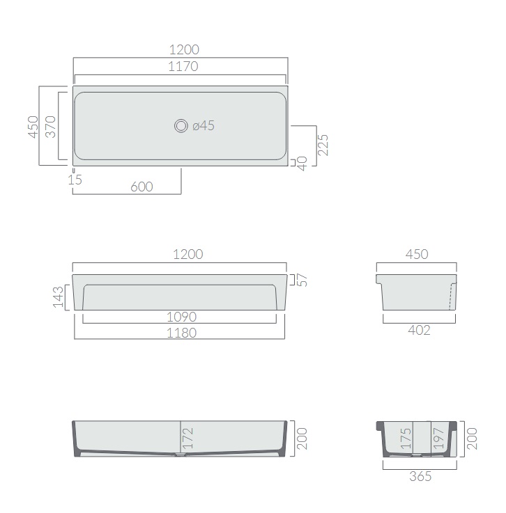 Galassia Canale Zlew jednokomorowy 120x45 cm Biały 2007