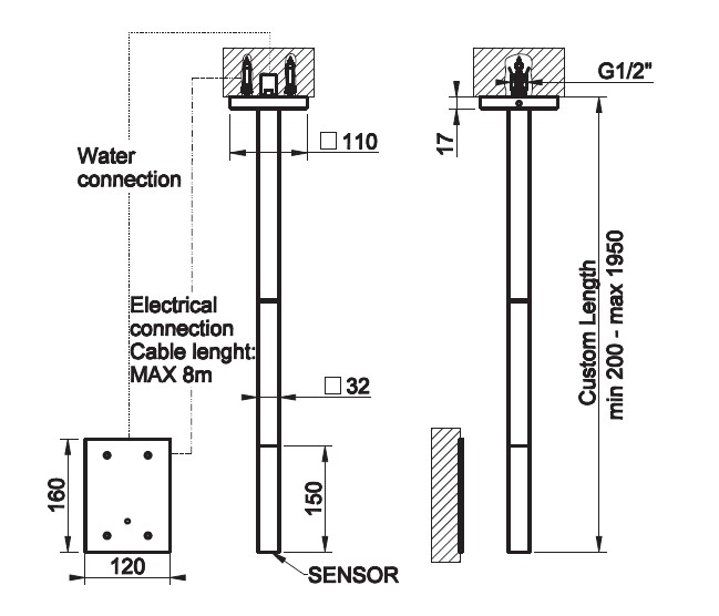 Gessi Rilievo Bateria umywalkowa elektroniczna sufitowa element zewnętrzny chrom 59026.031