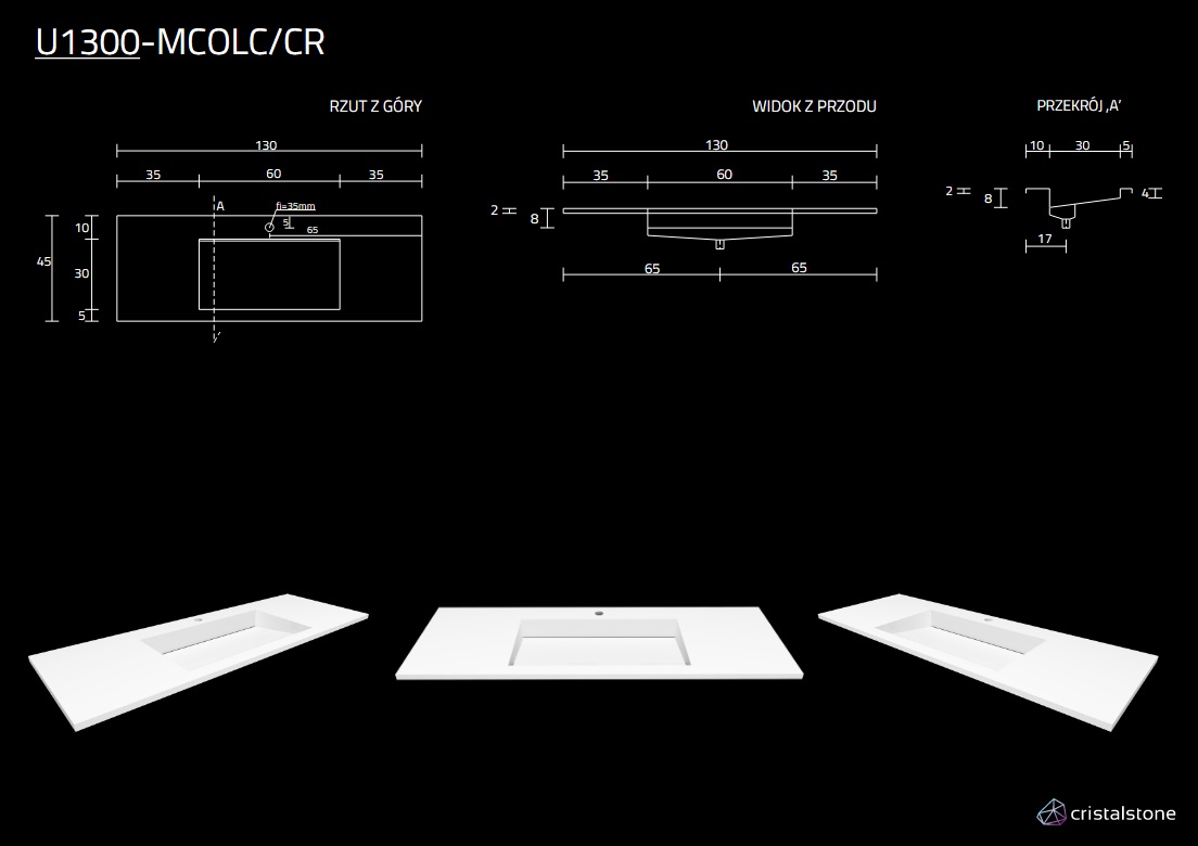 Cristalstone Linea Ideal Umywalka wpuszczana w blat Biały U1300-MCOLC/CR