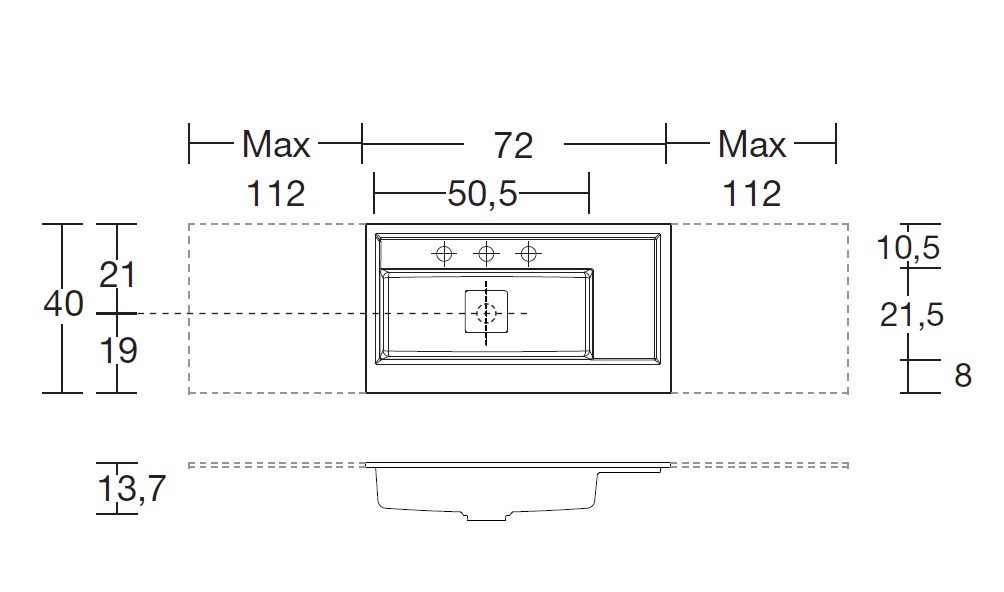 Możliwość zamówienia umywalki po lewej/prawej stronie bądź na środku blatu.