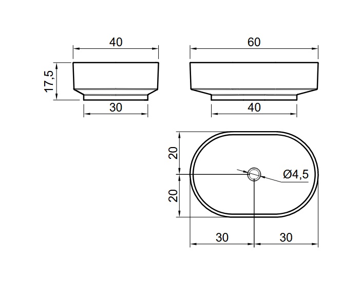 Antonio Lupi Borghi Umywalka stawiana na blat 40x60 cm Notturno BORGHI60NOTTURNO